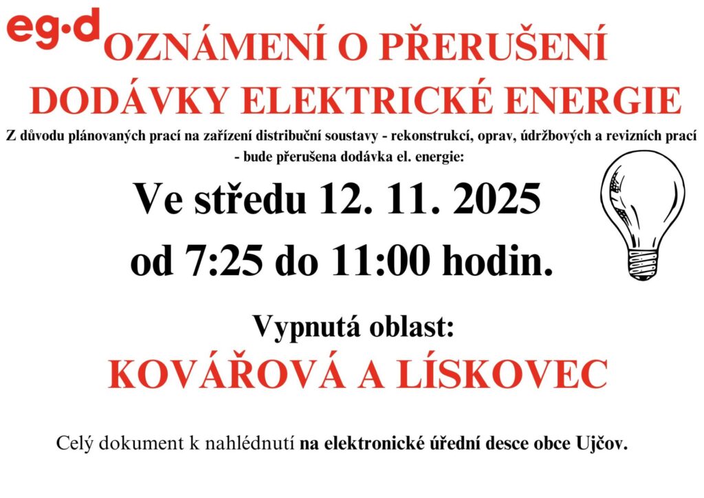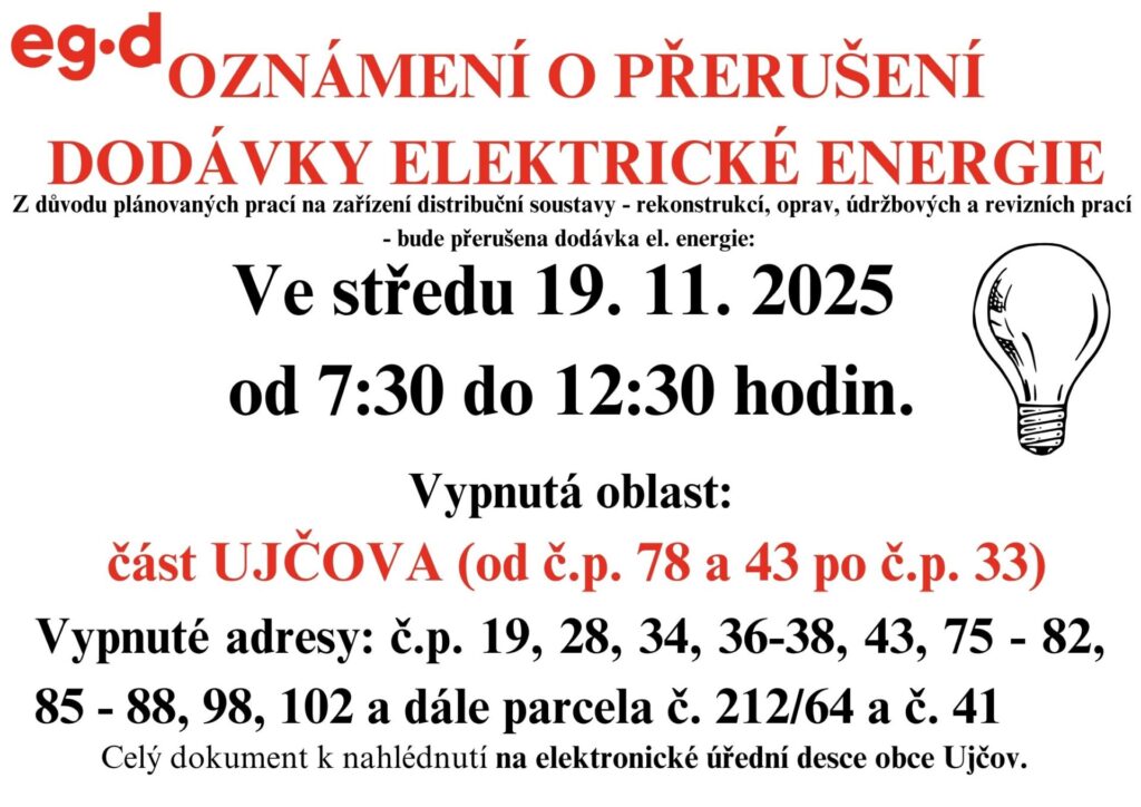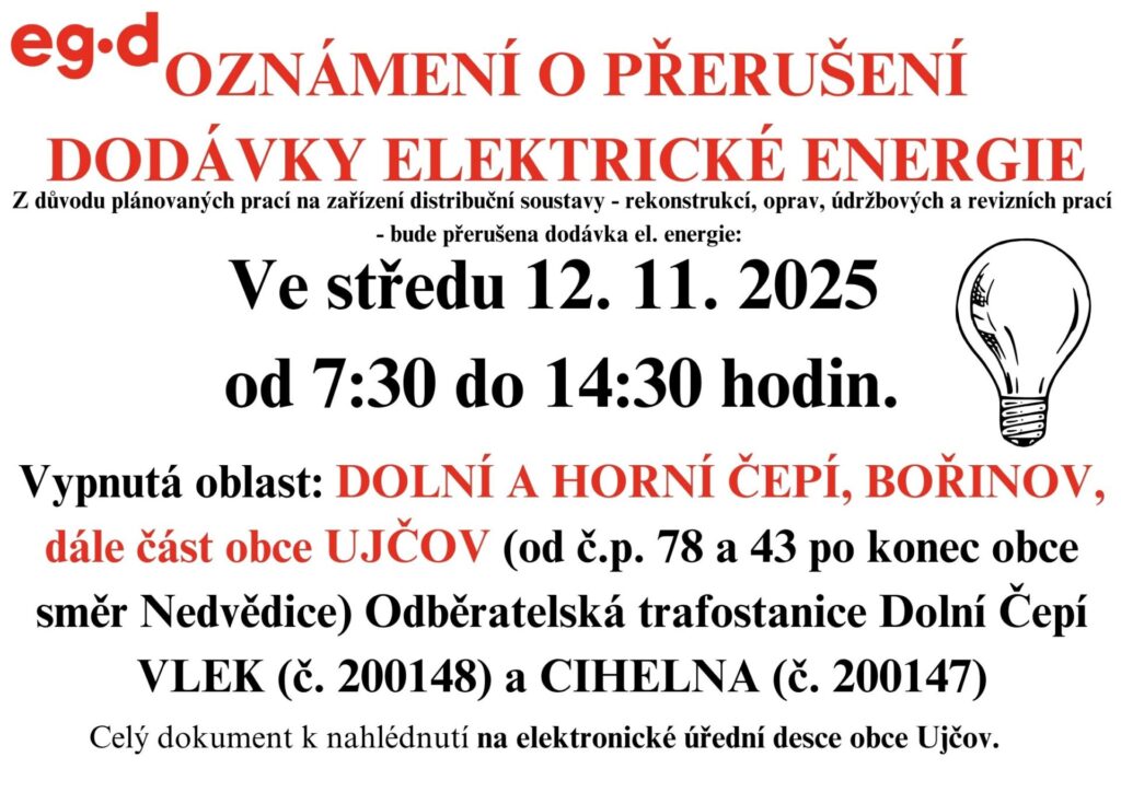 OZNÁMENÍ – Přerušení dodávky el. energie