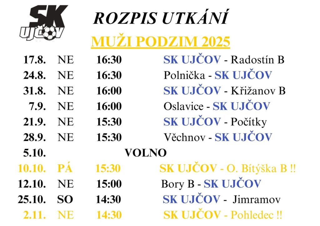 OÚ UJČOV BUDE Z TECHNICKÝCH DŮVODŮ VE STŘEDU 5.11., 12.11. A 19. 11. 2025 UZAVŘEN.